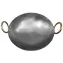 • Hand-made Iron Kadai pre- treated with heat and Oil. Fry an onion before first use to remove any surface carbon deposits