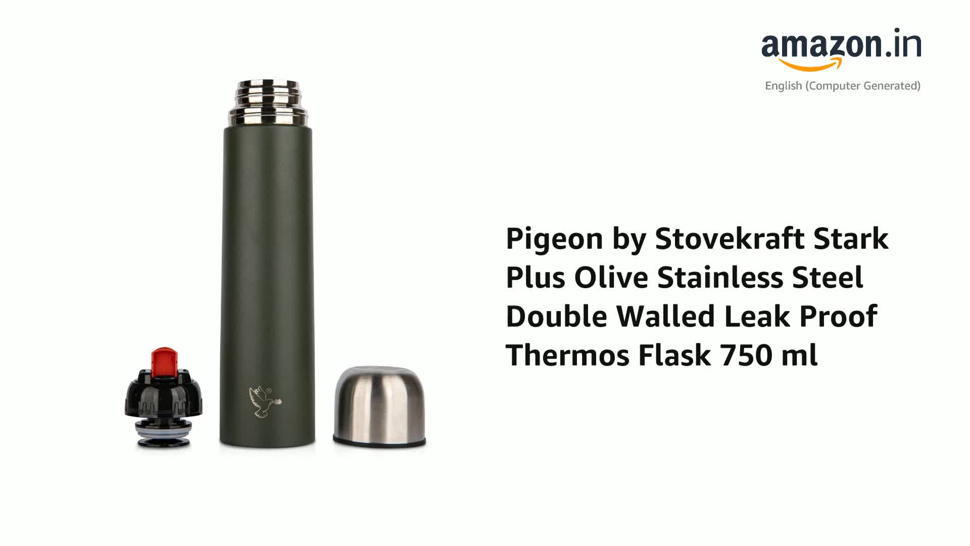 HomeKitchenTraditional CookwareKadhaiPigeon by Stovekraft Stark Plus Galaxy Stainless Steel Double Walled Leak Proof Thermos Flask with Copper Coating Inside for Better Hot and Cold Retention 750 ml (Green)