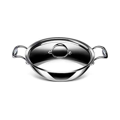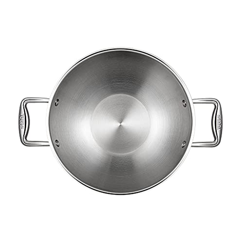 German technology has come together with Indian craftsmanship to create a world class quality of cookware that is proudly built in India. Whether you prefer cooking in a traditional Indian kadhai or are looking for a kadhai for a big family the Stahl Artisan range is passionately built to suit all kinds of Indian cooking. Great to Make : Stir-fry vegetables breakfast delicacies like poha upma lentils curries etc. The Kadhai is made in the finest quality of triply stainless steel. The middle layer of triply is a heat conducting layer which is sandwiched between food grade SS 304 surgical stainless steel and induction friendly magnetic stainless steel. It uses 20% less oil than normal cookware. Stahl cookware is the only triply cookware that boasts of investment cast ergonomic handles that are a perfect grip in your hands. The heatproof handles ensure that your hands dont feel the heat. The kadais seamlessly rounded edges enable a spill proof smooth pour.