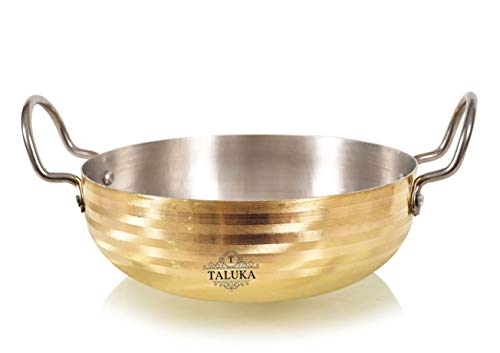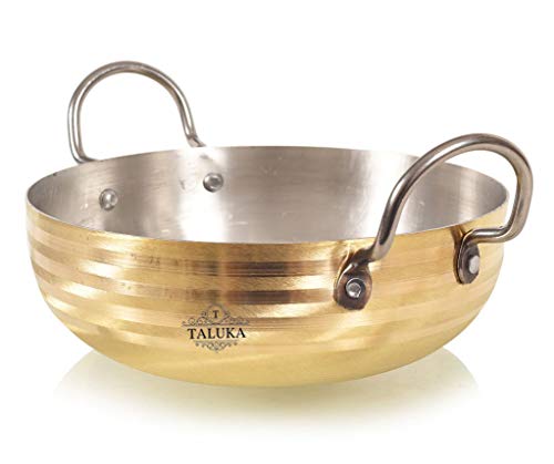 Taluka Brass Handmade Kadhai/Woks with Handle (2.5 L 8 cm X 25 cm Gold)