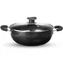Vinod Cookware Hard Anodised Induction Friendly Kadai With Glass Lid Black 4.1 Litres