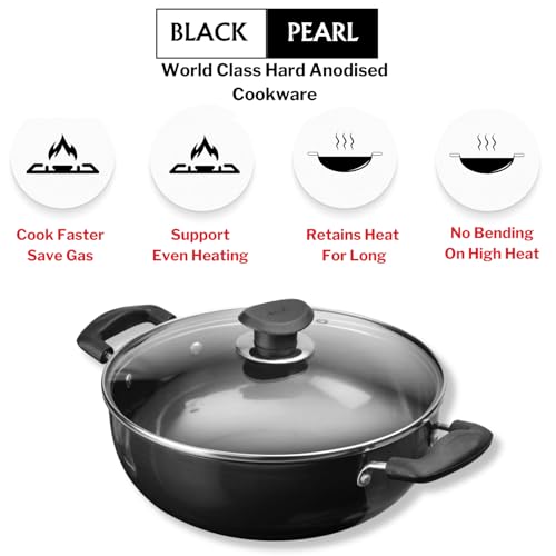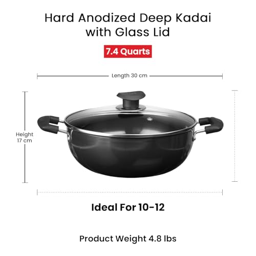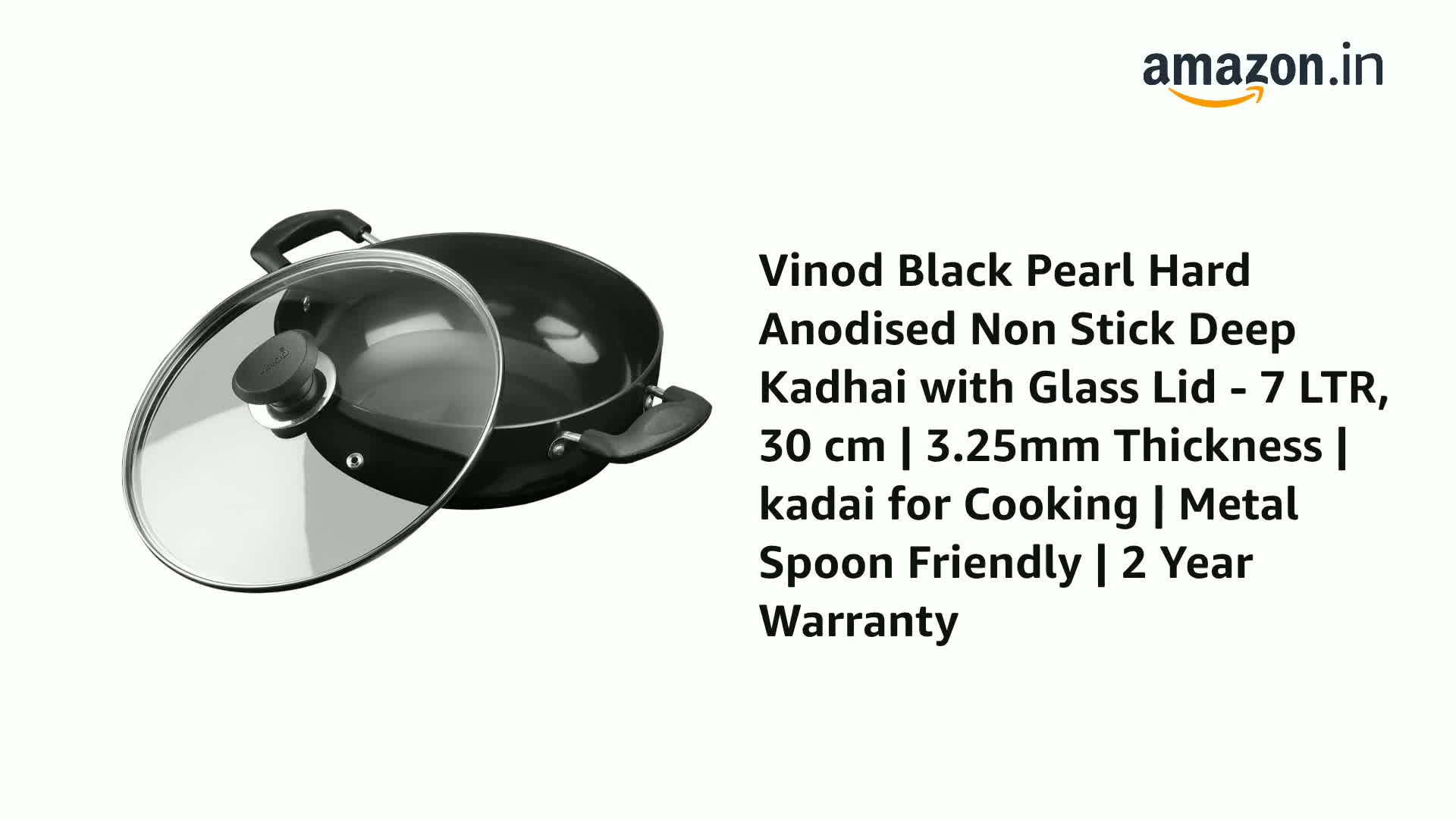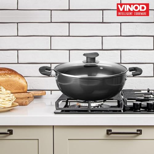 Vinod Black Pearl Hard Anodised Non Stick Deep Kadhai with Glass Lid - 7 LTR, 30 cm | 3.25mm Thickness | kadai for Cooking | Metal Spoon Friendly | 2 Year Warranty