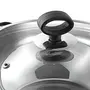 The stainless steel kadai comes with unique sandwich bottom wherein the aluminium is sandwiched between two layers of stainless steel that ensures your food cooks fast and evenly. Its thick bottom ensures that the food does not get burnt. It is made with hygienic stainless steel which is easy to clean and has soft touch handles which are heat resistant .It has a tempered glass lid that allows you to see through the cooking process this lid has a steam release vent