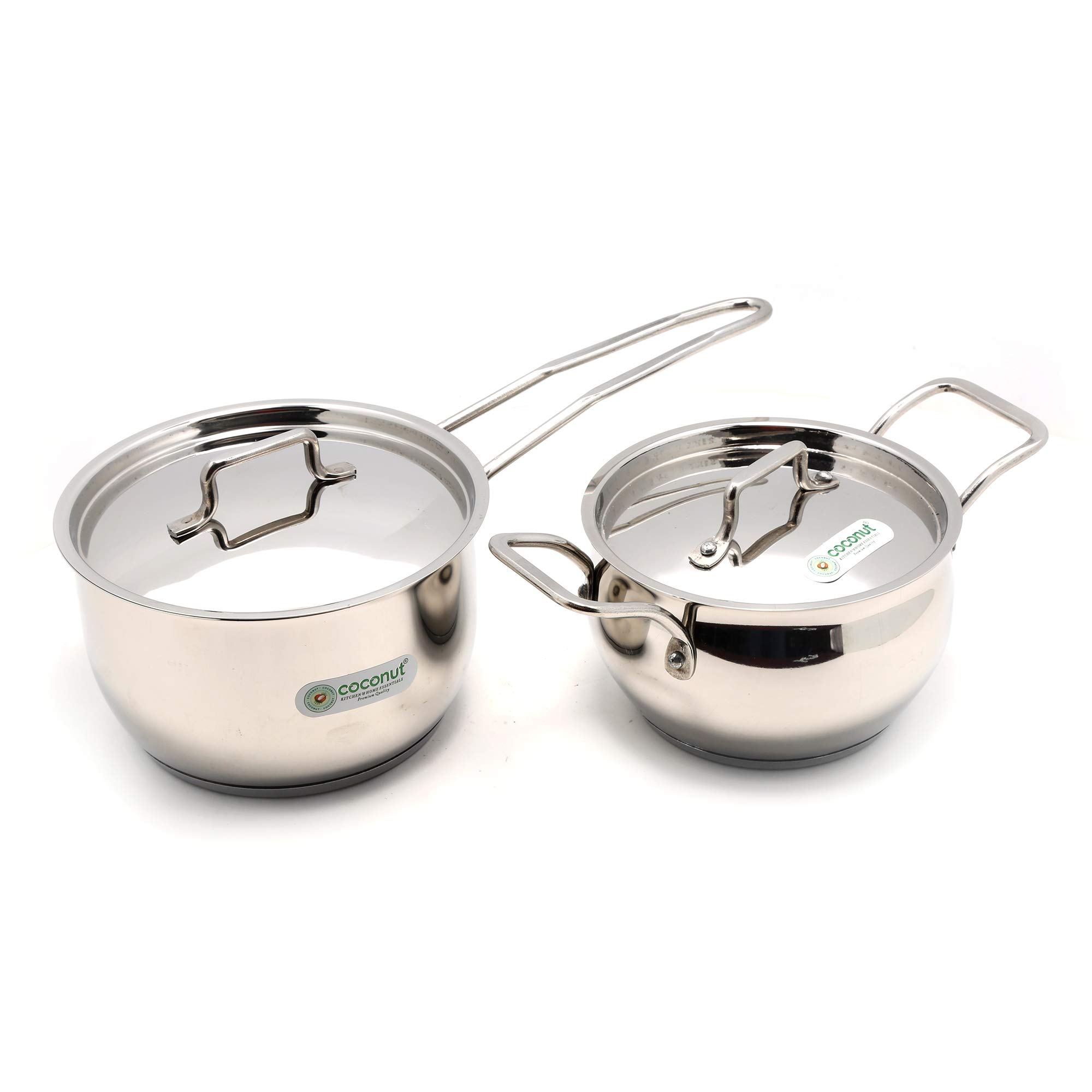 Coconut Stainless Steel Sauce Pan & Rexona Pot with Lids - Thick Triply Bottom (Sandwich Bottom) - 1500ML & 2000ML - Set of 2