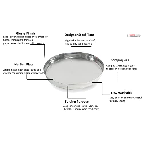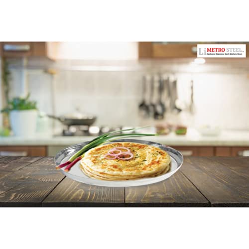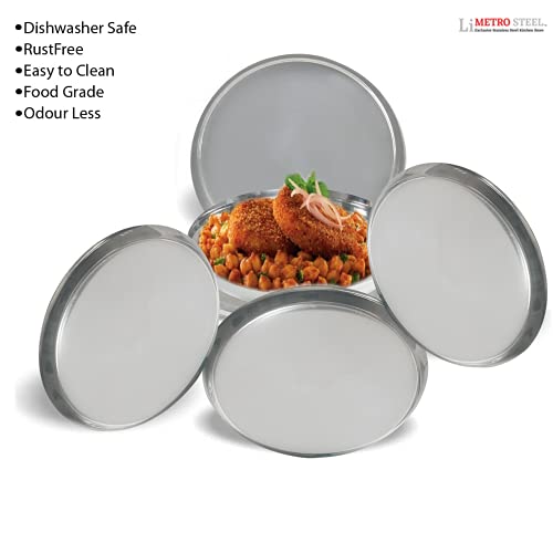 LiMETRO STEEL Stainless Steel Heavy Gauge Pack of 6 Steel Dinner Plates Set / Bhojan Thali / Lunch Plates / Dinner Set (6 Pieces 28 cm Diameter.)