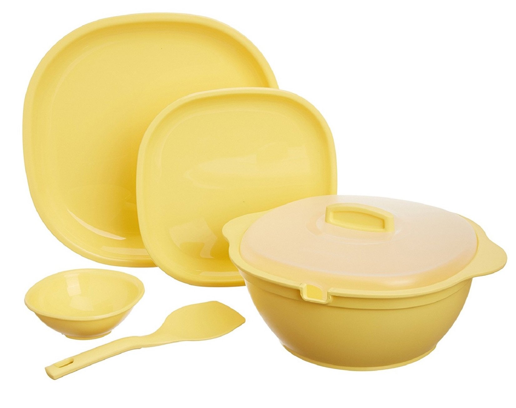 Signoraware Plastic Square Dinner Set (Yellow) - 21 Pieces