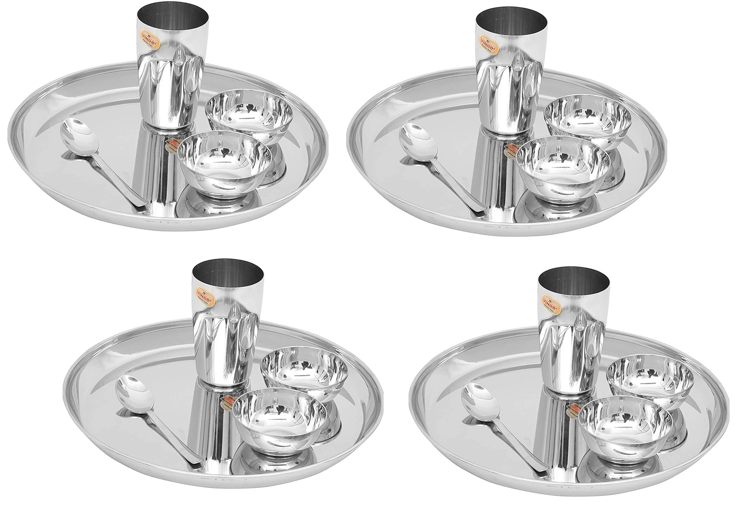 Vinod Stainless Steel 20 pcs Thali Set/Dinner Set/Bhojan Set of Dinner Plate, Katori Bowl, Glass, Spoon (Assembled Dinnerware) kh13