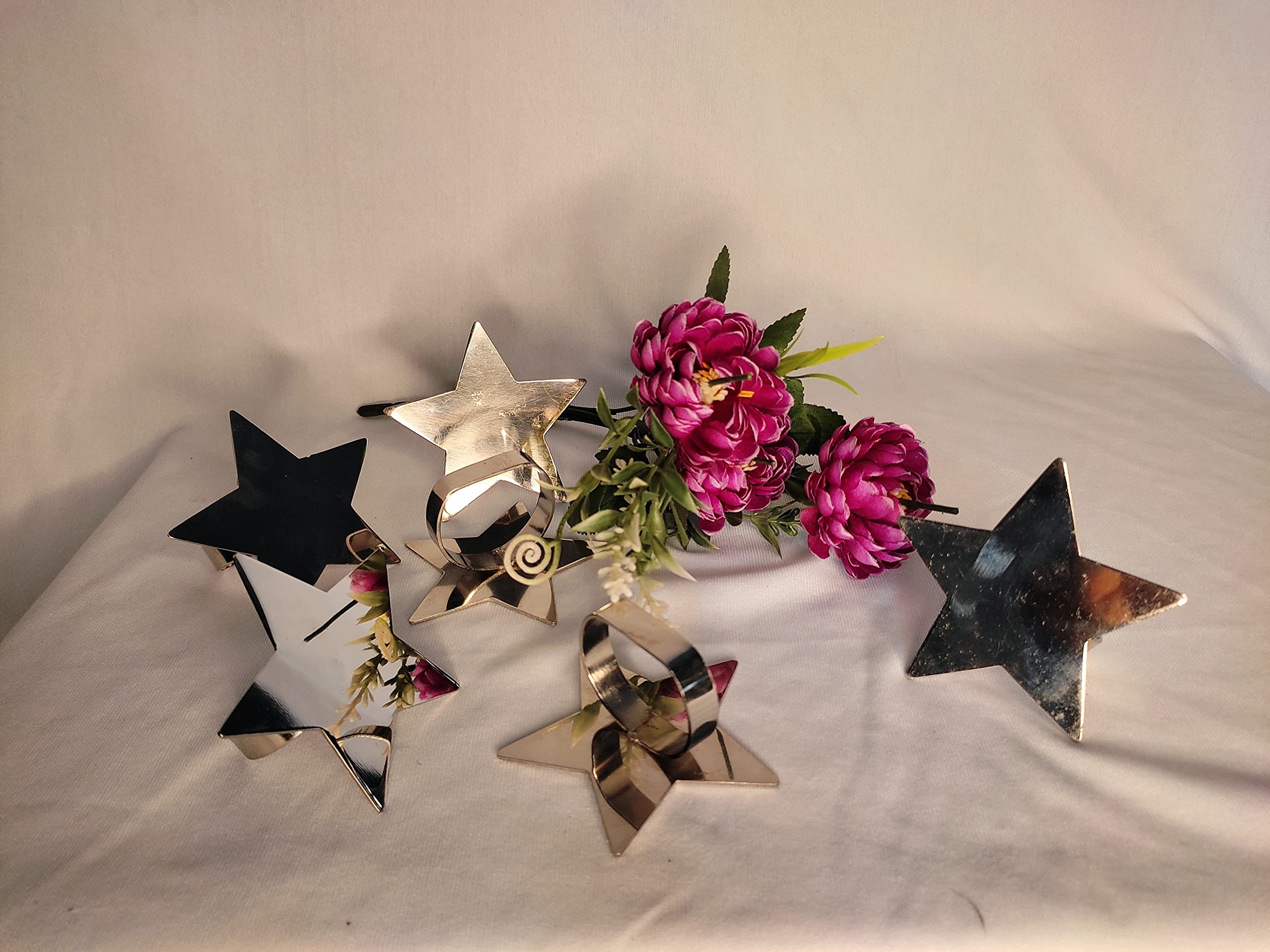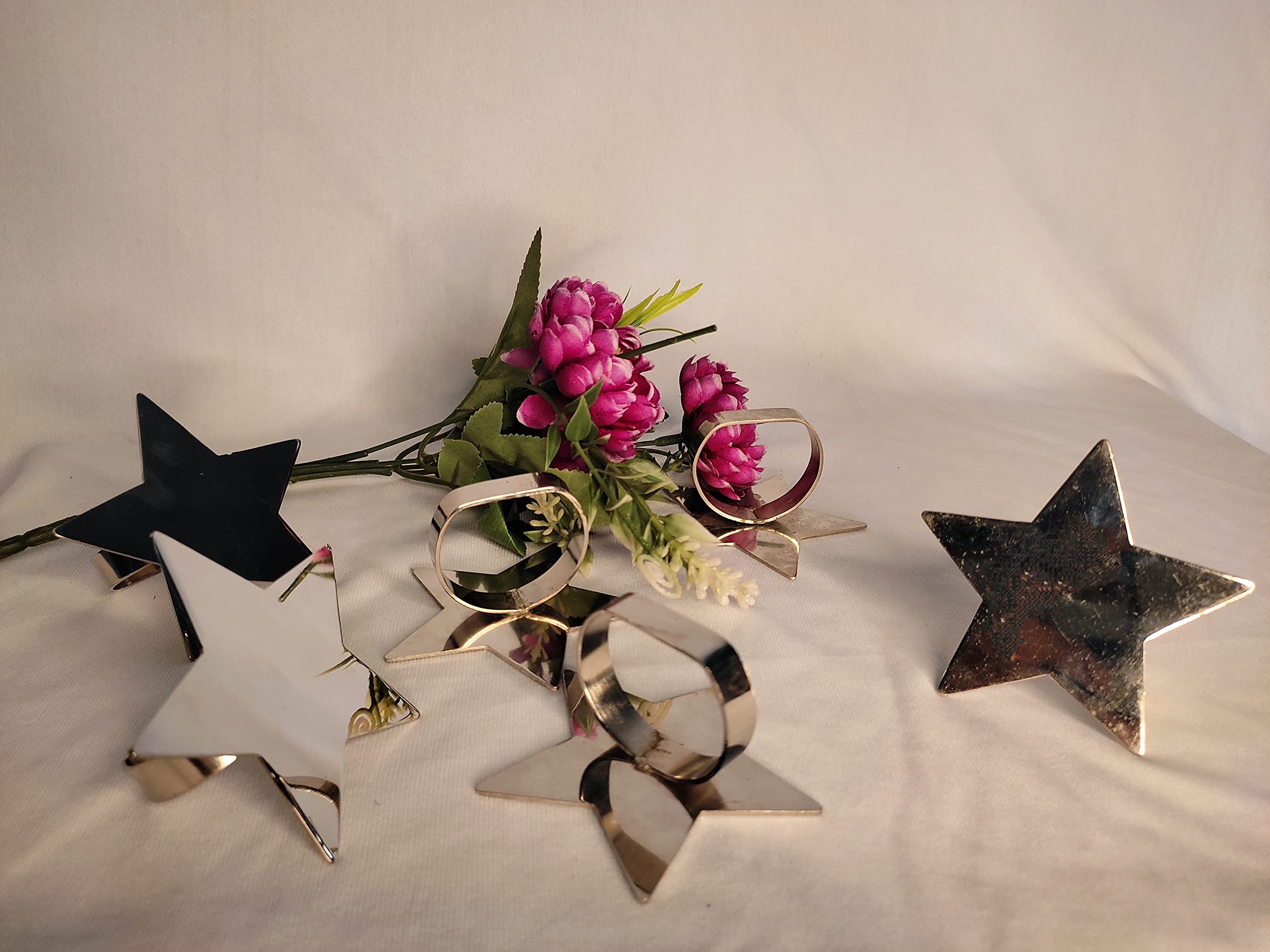 BRASS CRAFTS Stainless Steel Star Shap Nickle Finishing Napkin Rings/Napkin Holder Buckle | for Wedding Party Weddings Family Gathering Dinner Table Decor Office Restaurant | Set of 6