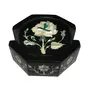 The Marble Inlaid Coaster Set is made in Agra India & fully handmade and Perfect for Office Home. Design: tree of life We will send you a paper with description and Meaning of the stone The Coaster can be used for decoration in Home and Office & also can be nice for gifts. To maintain this art piece simply clean it with soap water and dry cotton cloth. Stone Inlaid Into The Coaster are Follows as: Carnelian - Orange Turquoise - Sky Blue. Mother Of Pear ---- Milky White. Malachite ---- Green .
