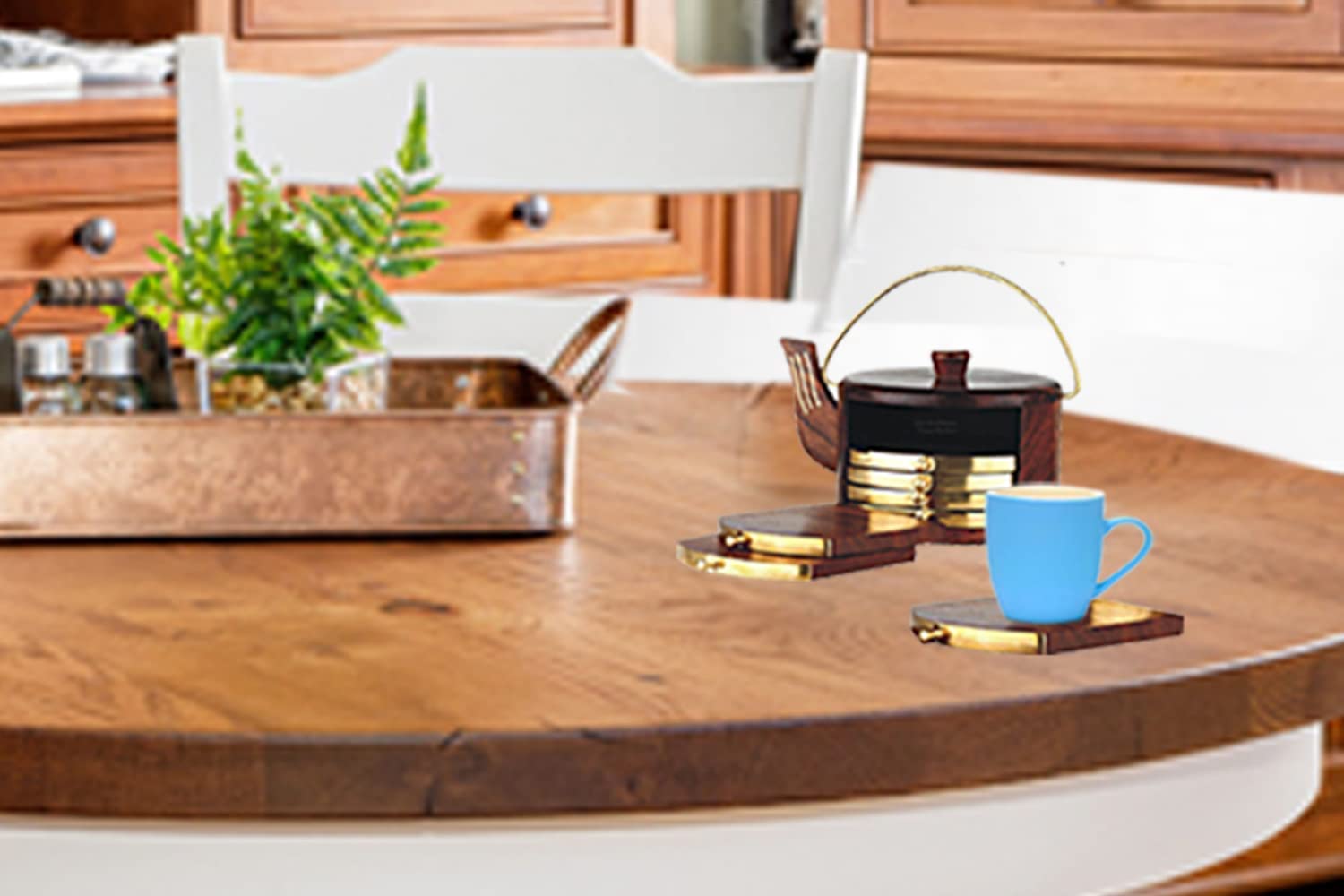 SAHARANPUR HANDICRAFTS brings you Make your table look stylishroyal and antique with this beautiful tea coaster in hut shaped container It consists of 6 pieces coaster with 1 container Handmade by skilled artisans from saharanpur - india's largest hub for wooden handicrafts Will add an antique charm to your dinning setup or office table tops as well as can be used as a showpiece Can be a wonderful gift for house-warming party weddings or for homemakers or for those who love to get ethnic stuff. Our Mini Pallet Coasters Are A Great Addition To Any Home And Are Widely Used For Home Decoration And Offices. Their Design Is A Simple And Light Weight Solution To Protecting Table Tops From Cup Rings. Each Piece Is Unique In Its Own Way. Its An Elegant Pick For Home Decor Piece Is Made By Skilled Artisans With Their Various Unique Techniques. Attractive Shape And Elegant Design Make It An Essential Part Of Your Home Decor. This Beautiful Item Can Be Placed In The Drawing Room Living Room Dining Table Or In Bedroom Or In Your Office. Artistically Adorned By Fine Work on The Entire Surface On This Beautiful Item. It Can Also Serve As A Great Gifting Option For Your Loved Ones Family And Friends. Decorating Our Homes Has Always Been The Most Favorite Way To Utilize Time. This Product Has Been Designed By Expert Artisans With Great Quality Of Material. This Beautifully Handmade Item Adds A Beautiful Look to Your Home.