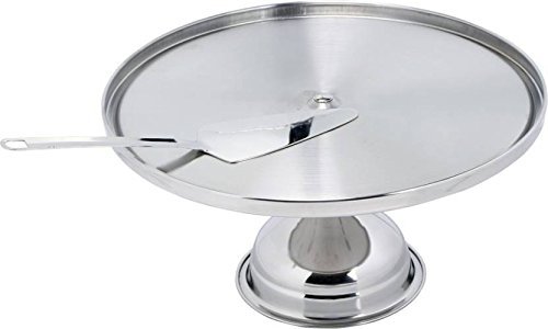 High quality stainless steel cake stand. Wide i.e. 32 cm diameter to accommodate any pizza or cake. Great way to display your cake, pastries, pizza, etc in the dining. It comes with the Pie Lifter this is ideal product to use for slice up dessert and then deliver it to a plate. The strong, yet flexible, stainless steel head can easily glide under pie crusts, yet won't bend, even with hefty servings. for serving dishes like cakes, Pizza etc.