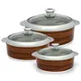 Color Name:L.WoodJaypee Glassmate casserole is crafted out of best materials with elegant finish and a transparent unbreakable glass lid. Its specially designed for Indian meals. The three different sizes are really handy and appropriate for serving multi cuisine in varying portions. The inner finished liner part is fabricated out of stainless steel sheet. The plastic outer body is moulded out of polypropylene material with a sturdy and beautiful designs. It is one of the superlative essential in your kitchen collections. Food grade BPA Free.