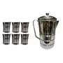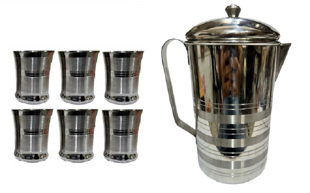 This stainless steel glasses are beautifully designed to add grace to your dining experience. As it's perfect for serving lemonade, water, juice, etc. This simple and elegant Stainless Steel Water Glass Set with designer pattern are a must-have for your home. The shiny silver color of the glasses lends them a classy look. The glasses are made of stainless steel so you never have to worry about them breaking. They are ideal for serving and gifting.This unique looking jug when you serve guests at home. This product is made of high quality stainless steel for better strength and durability.