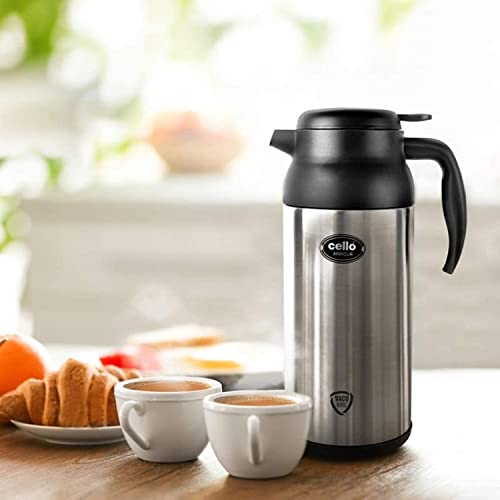 Cello Armour Vacuum Insulated Carafe | Hot and Cold Flask | Vacuum Insulated Tea/Coffee Pot | 2000ml, Black (Stainless Steel)