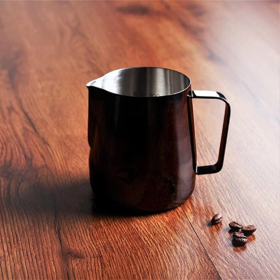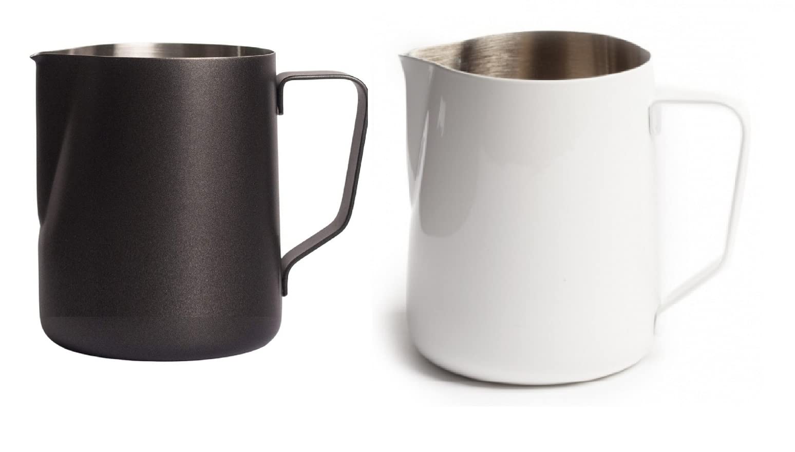 Quality stainless steel. Rust-proof, stain-proof, heat-proof and nontoxic, coating has a matte grain texture, good hand feeling, abrasion-resistant, and it is not easy to peel off the paint after long-term use, The weld joint of the cup body and the handle is firm, durable to use, Can be used froth or steam milk for lattes, serve milk or cream, The design of extended orifice lengthen the liquid flow trajectory, the water flow is straighter and thinner, the drawing precision is higher, and the control is easy, makes the garland more poetic, Perfect for making frothing or steaming milk for espresso, cappuccino or hot chocolate. be your own barista in home and office. Set of 2 Milk Jug Capacity- 600/800 ml Color- Black/White
