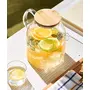 FitsFlair Glass Water Jug with Wooden Lid Drinking Beverage Pitcher with Cap 2 Litre Set of 1