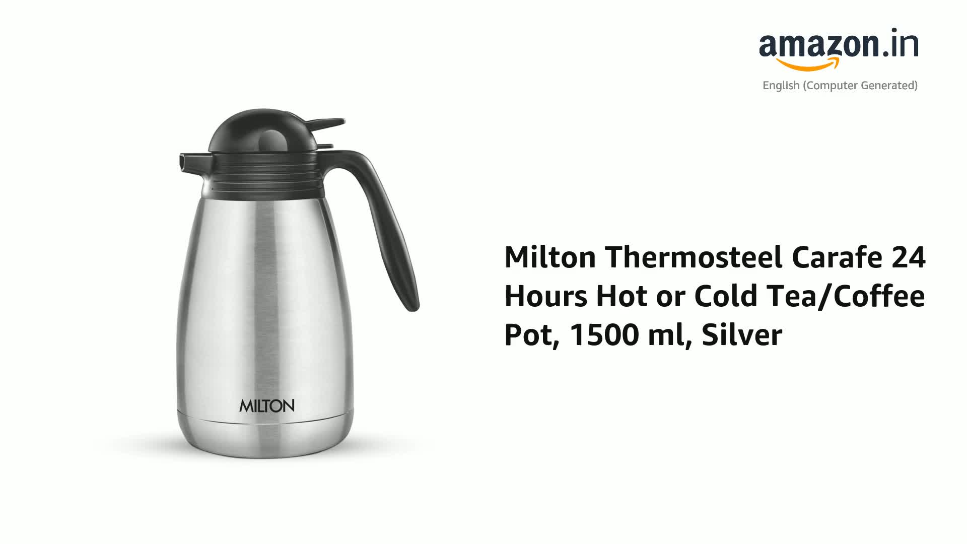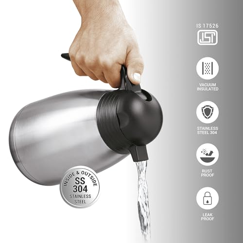 Milton Carafe 1500 Stainless Steel Double Walled Vacuum Insulated Flask with Lid and Handle, 1500 ml, Silver, Coffee/Tea Carafe Heat & Cold Retention, Leak Proof, Rust Free, Easy to Carry