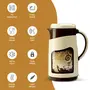 ?Contemporary dual-tone finish and body-graphics wide-mouthed for easy filling and cleaning. It is BPA free Leak proof odour proof and light weight. Fill the Jug upto the brim. This ensures maximum heat retention.