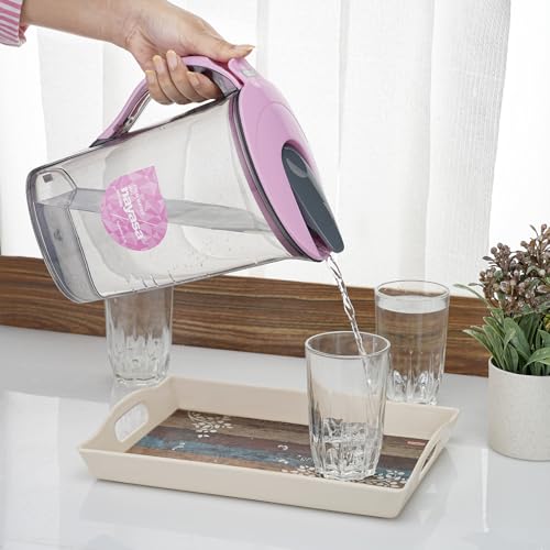 BPA free (non carcinogenic) non toxic plastic reusable for lifetime recyclable beautiful water jug classy look delegate item (handle with care) ideal for cold water storage do not use hot water. Available size : 2100 ml.