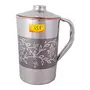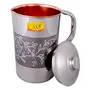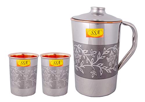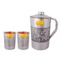 Shiv Shakti Arts Embossed Luxury Engraved Design Steel Copper Jug Glass Set - 3 Pieces Drinkware Set - (Capacity -1.5 Liter)
