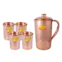 Shiv Shakti Arts® Plane Shinee Design Pure Copper Jug/Pitcher with 4 Glasses - Drinkware Set - (Capacity - 1.6 Liter) - 5 Pieces Set