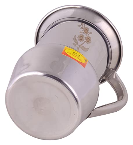 Shiv Shakti Arts® Pure Stainless Steel Water Jug Laser Flower Design Volume= 1.8 Litre (4 PieceSilverNo 1)