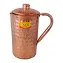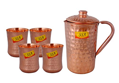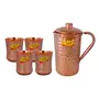 Shiv Shakti Arts® Shinee Hammer Luxury Design Pure Copper Jug with Glass Set - (Capacity - 1 Liter) - 5 Pieces Drinkware Set