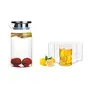 Ilusion Borosilicate Glass Big Set of 6 350ml Each and Genius Borosilicate Glass Jug with Steel lid 1000ml Set of 1 Transparent