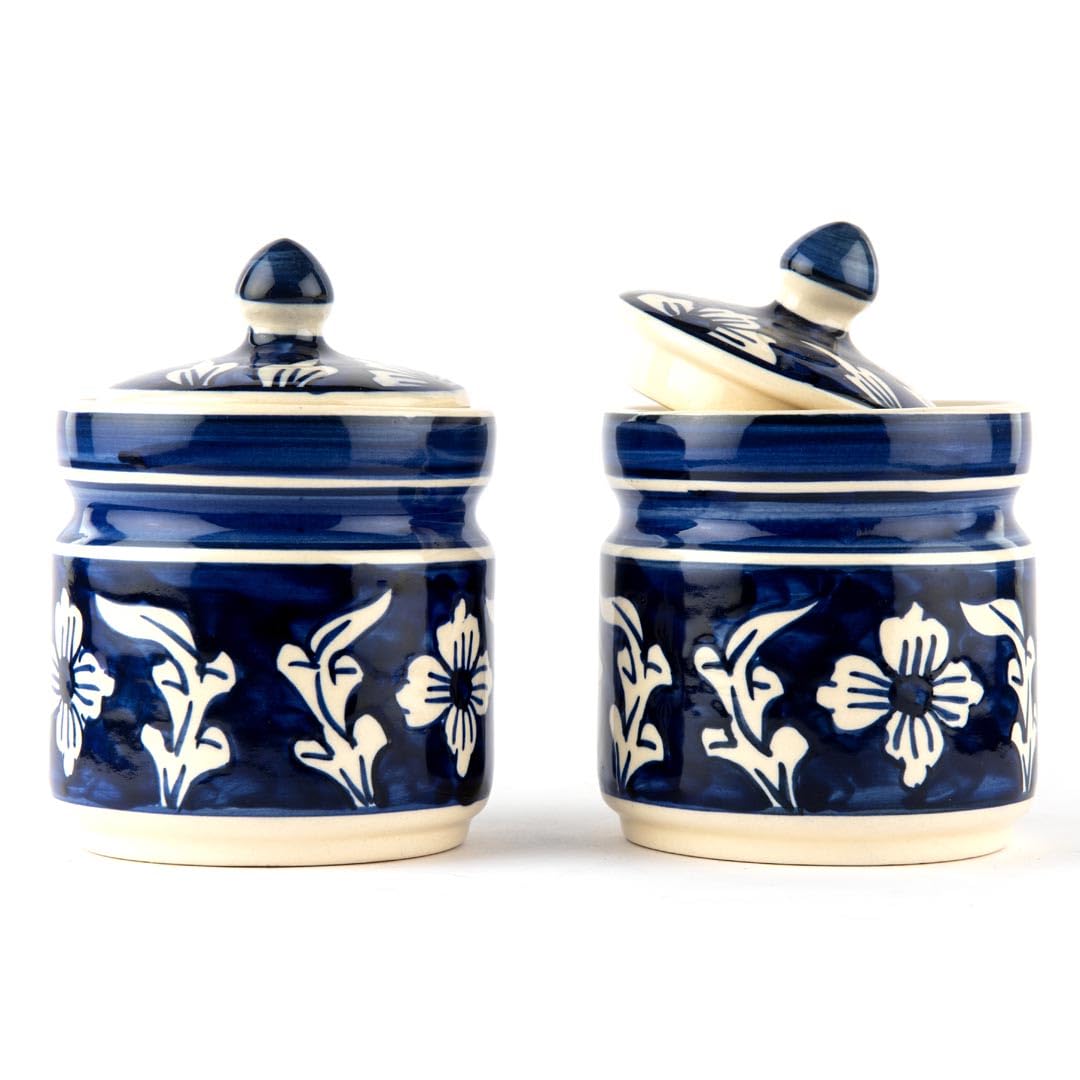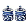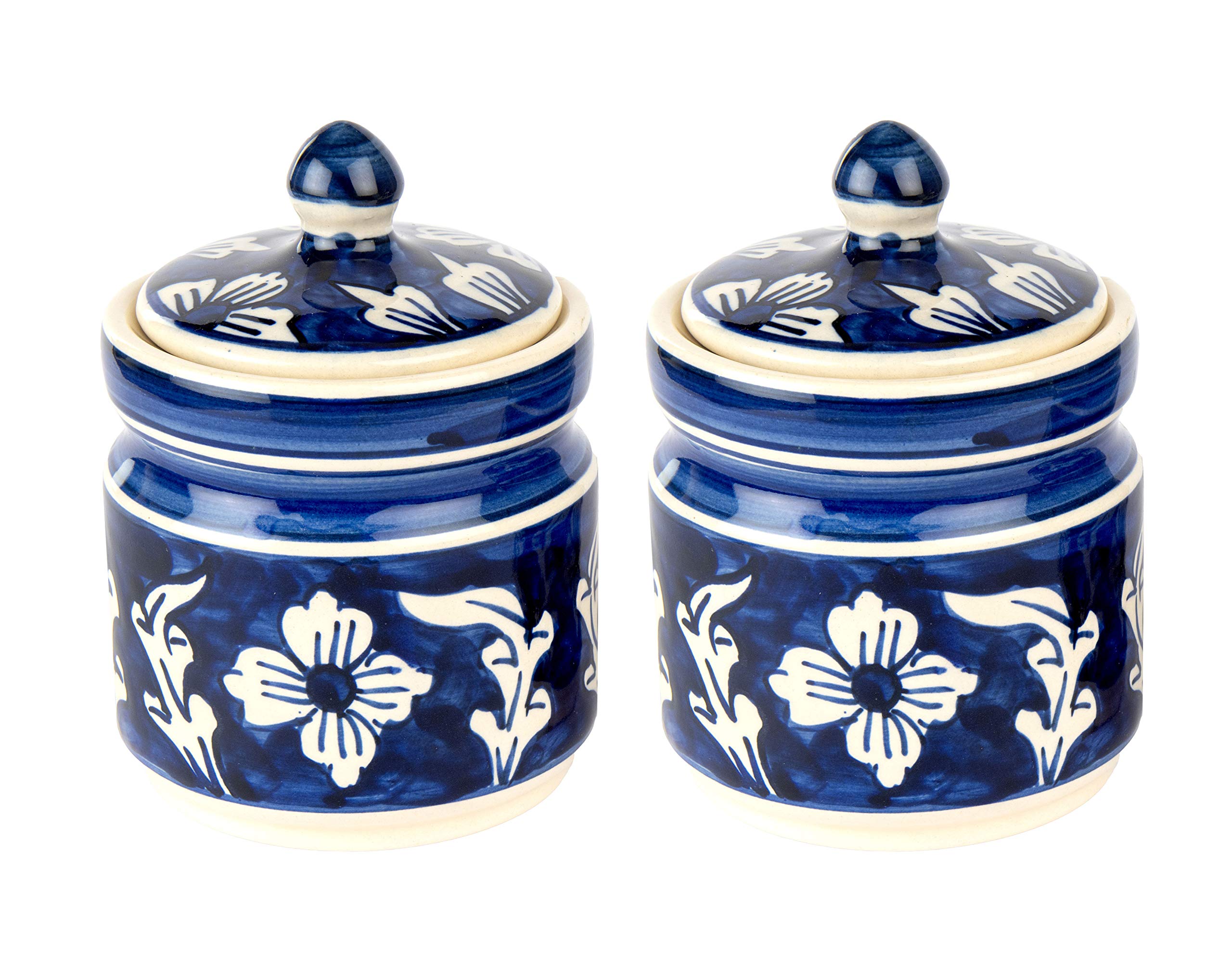 KHURJA POTTERY Ceramic Mughal Art Painting Multipurpose Jar Set of 2 350 Ml Blue