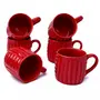 KHURJA POTTERY Coffee Tea Mugs Cups Set of 6 Studio Pottery Ceramic (Full Red 150 ml Each Microwave & Dishwasher Safe) | Tea | Hand Glazed & Handmade | Special Rare Edition for Gifting