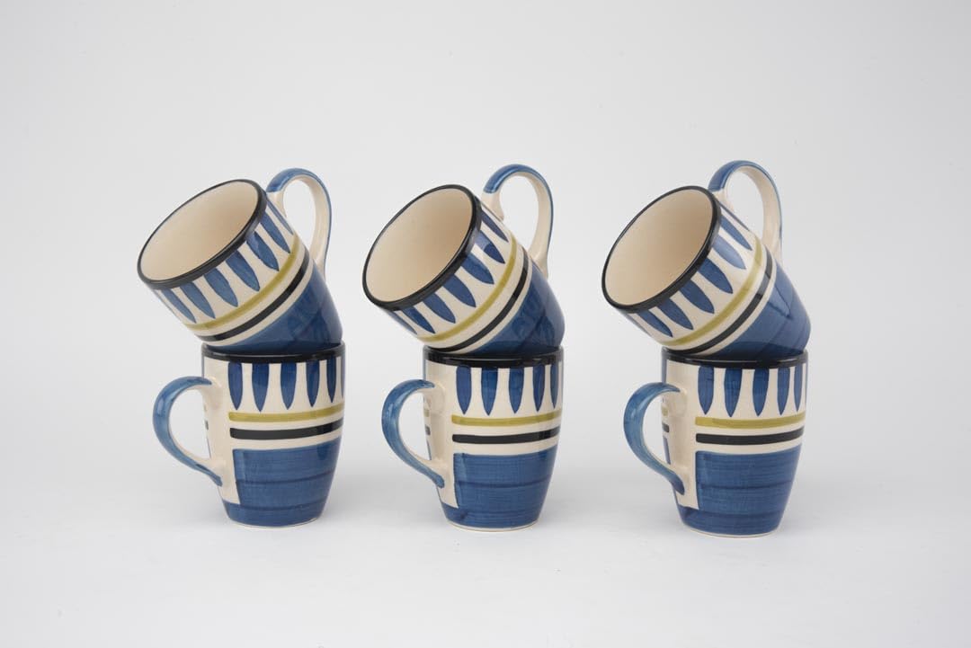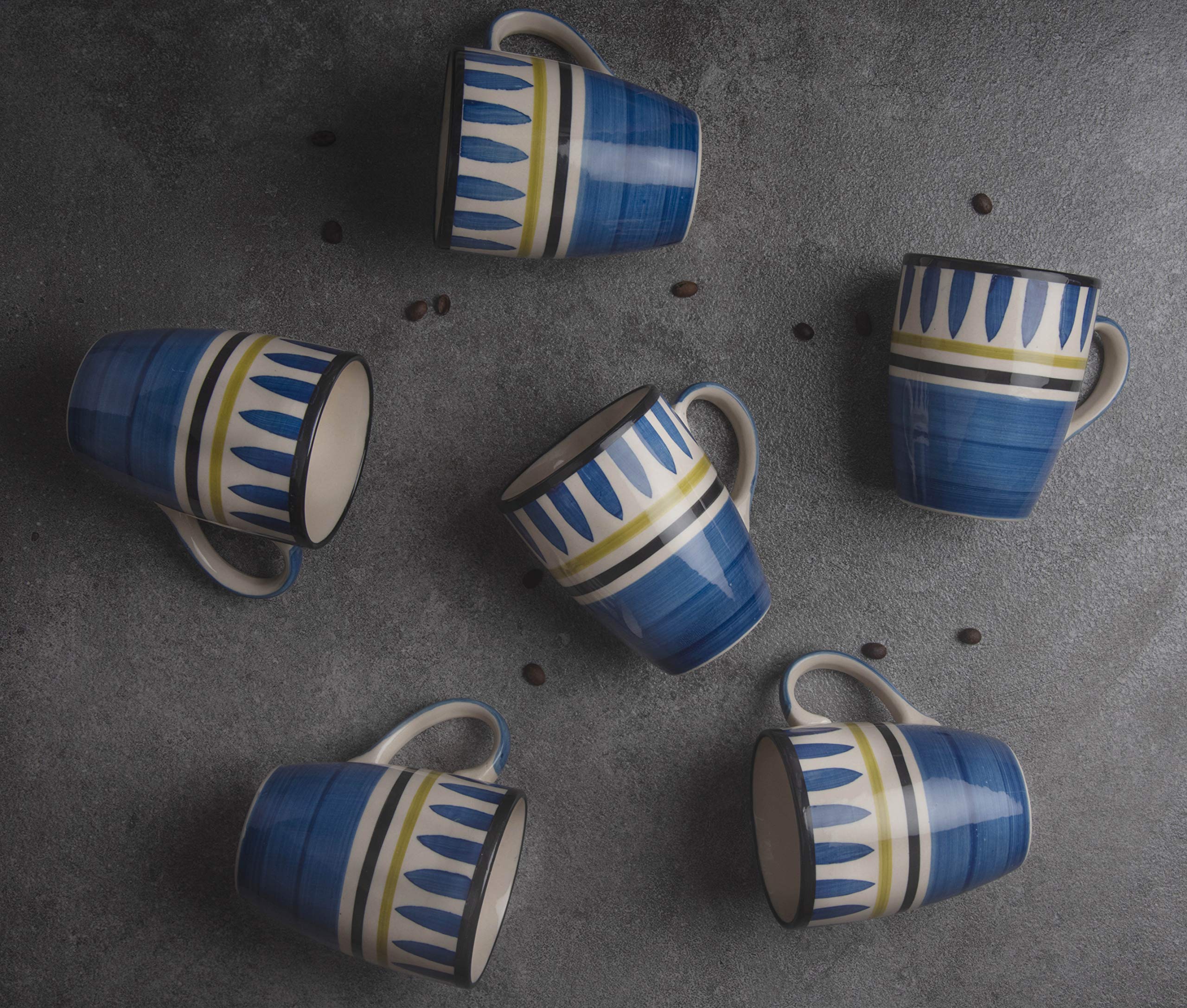 HomeKitchenServeware setsMugKHURJA POTTERY Microwave Safe Hand Painted Ceramic Tea Cup/Coffee Mug Stylish Design with Ergonomic Handles for Ease of Use Set of 6
