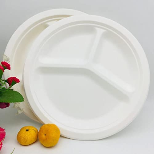 Bio Degradable Compostable Round | Disposable | Eco Friendly | Party | Wedding | Natural | Use and Throw | Light Weight | Dinner Paper Plates| Plates | (10 Inch 3CP, 100)