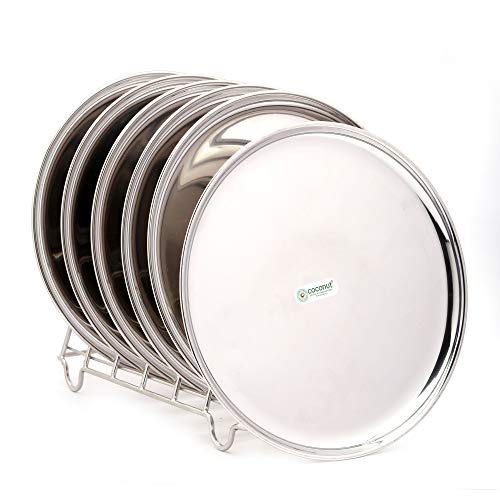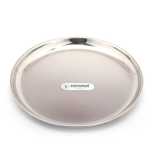 Coconut is range of innovative and products for Home and Kitchen. These Plates are made from Food Grade Stainless Steel material. It is ideally used for serving Side Lunch or Dinner food items at the Dining Table. Easy to clean and wash they have very exotic silver shining. Highly durable and made of fine Stainless Steel. They are extremely durable Long Lasting Compaq sizes and are also easy to store in Modular Kitchen Cuboards. Product Content : Coconut Stainless Steel China Full Plates - Size - 12 - Set of 6 Units Dimension - Width -28.5 Cm & Height -28.5 Cm. Note: Plate Rack not included