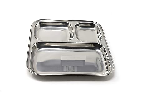 Divided dinner plates are great for food control and offering a balance of healthy foods. Provides you with enough compartments to hold different foods such as meals soup sauce vegetables fruits etc. Reusable they can be widely applied for camping picnics and more also suitable for home school canteen cafeteria hotel and other food service places Perfect for everyday use Easy to clean dinner plate is highly portable; can be stacked when not in use save space. The 3-grid design can perfectly separate the food our plates have a deeper depth which ensures food doesnt spill easily Product Dimension- 25x25x2.5 Cm Set of 1