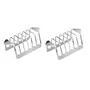Practical and easy to use this toast rack will hold each slice until you're ready to eat. Constructed of stainless steel it is durable and will look great on your breakfast table. The small round feet keep your toast elevated from the table or countertop while the rounded bars hold toast upright. This toast rack can hold up to six slices of bread or toast perfect for a family breakfast or some who really likes toast and is a great ition to every kitchen. Set of 2