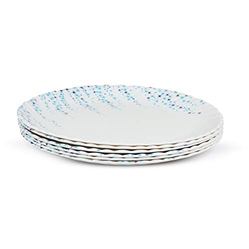 Get the posh and sophisticated feel of a rich dining experience in an expensive hotel right in the comfort of your home with this set of coloured Dinner Plates from "Golden Fish". Made of Melamine these round set of 6 plates is lightweight & durable. Additional Benefits:- Making it easy for you to clean it without exhausting yourself >> Pack of 6. >> These dinner Plates includes Six dinner plates and enough to set a beautiful dining table. >> Stackable; Hygienic; Design and color will never faint >> Made from Melamine >> Colour: White Base with Printed Patterns Note:- Please note that computer monitors differ in the colors shown on the screen so actual product may be darker or lighter than anticipated.