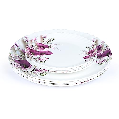 Get the posh and sophisticated feel of a rich dining experience in an expensive hotel right in the comfort of your home with this set of coloured Dinner Plates from "Golden Fish". Made of Melamine these round set of plates is lightweight & durable. Additional Benefits:- >> These dinner Plates includes six dinner plates and enough to set a beautiful dining table. >> Break resistant >> Stackable; Hygienic; Design and color will never faint >> Made from toughened extra-strong and scratch resistant material >> Colour: White Base with Printed Patterns Note:- Please note that computer monitors differ in the colors shown on the screen so actual product may be darker or lighter than anticipated.
