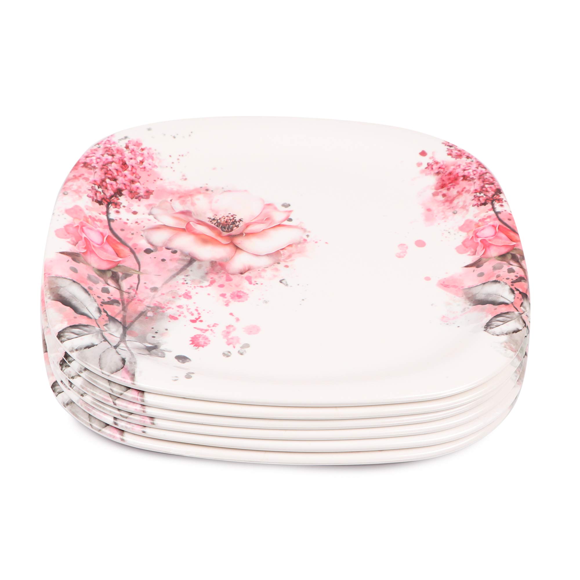 Get the posh and sophisticated feel of a rich dining experience in an expensive hotel right in the comfort of your home with this set of coloured Dinner Plates from "Golden Fish". Made of Melamine these Square set of plates is lightweight & durable. Additional Benefits:- >> It is also dishwasher-safe making it easy for you to clean it without exhausting yourself >> Pack of 6. >> These dinner Plates includes six dinner plates and enough to set a beautiful dining table. >> Break resistant >> Dishwasher safe >> Stackable; Hygienic; Design and color will never faint >> Made from toughened extra-strong and scratch resistant material >> Colour: White Base with Floral Printed Patterns Note:- Please note that computer monitors differ in the colors shown on the screen so actual product may be darker or lighter than anticipated.
