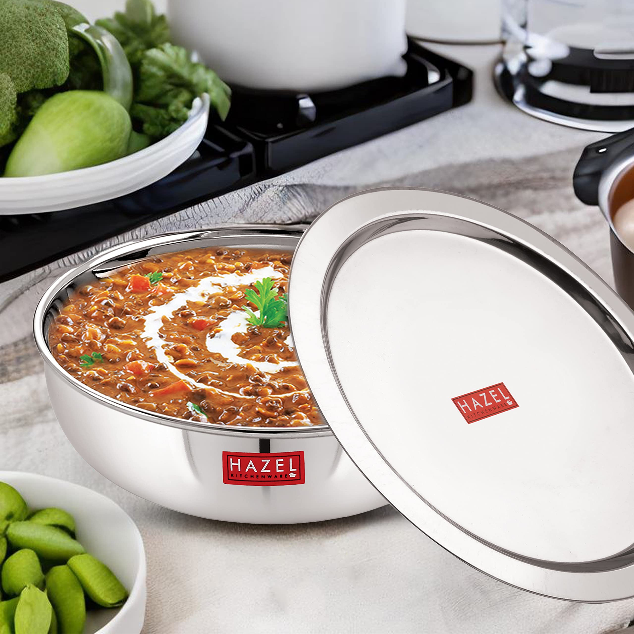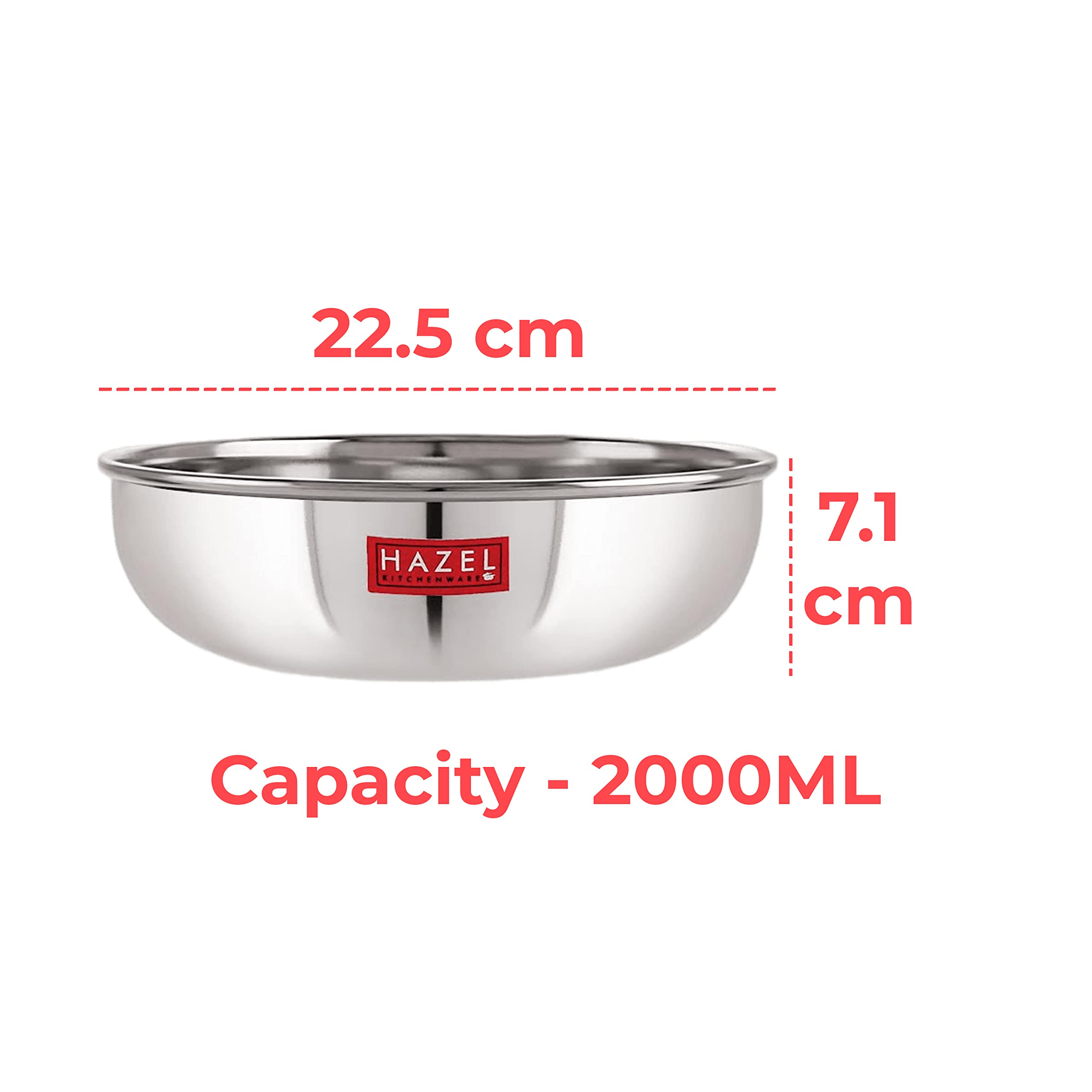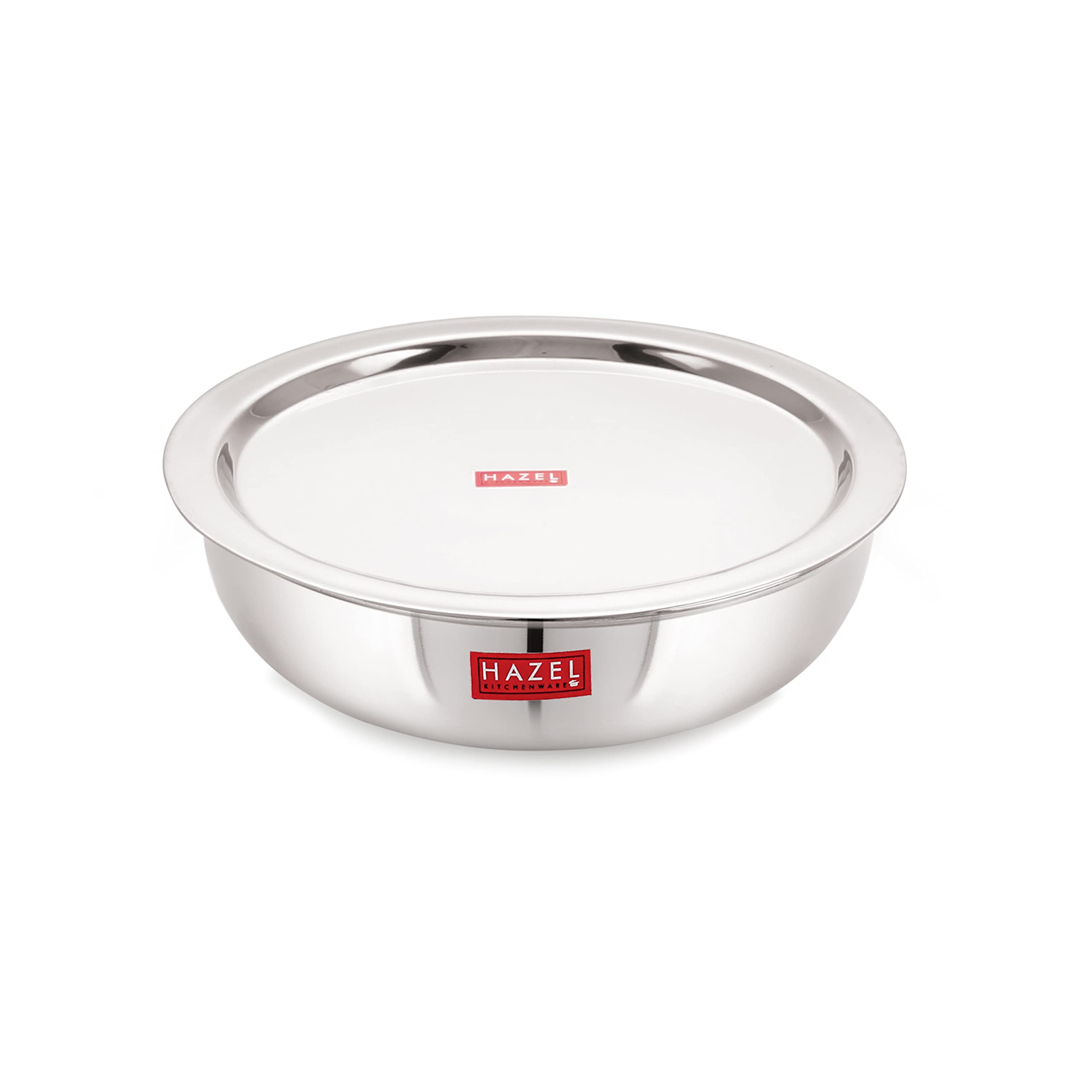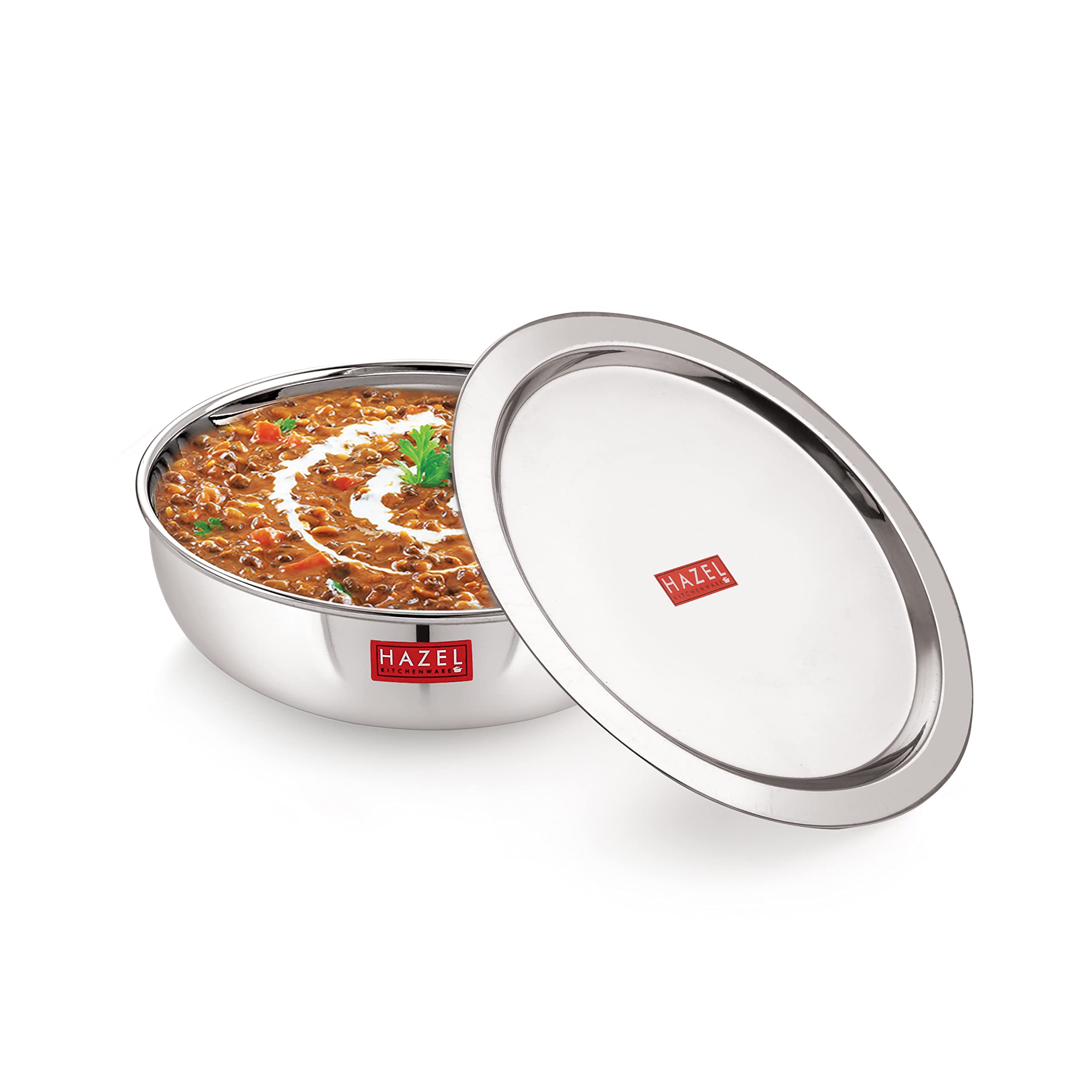 HAZEL Alfa 18 Gauge Premium Stainless Steel Tasra Kadhai with Lid 1800 ml Silver