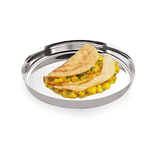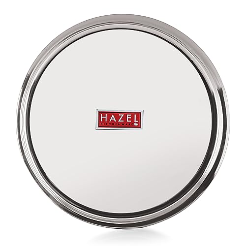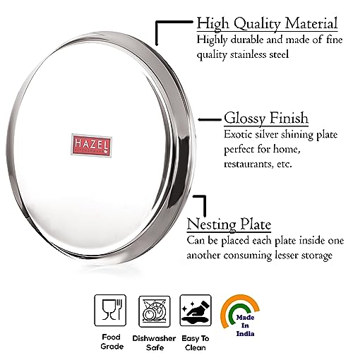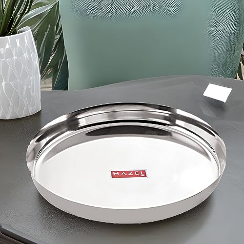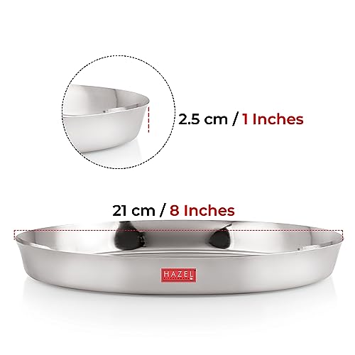 HomeKitchenServeware setsPlatesHAZEL Stainless Steel Plates Set | Premium Mirror Finish Thali Set Stainless Steel | Heavy Gauge Steel Plates Set for Dinner & Lunch Set of 1, 21 cm