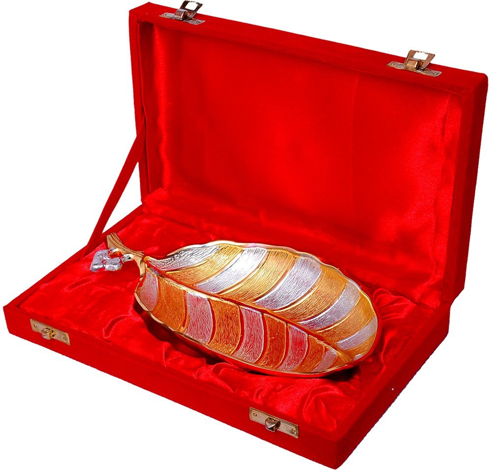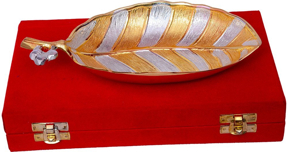 JAIPUR ACE Leaf Pattern Gold and Silver Plated Platter (Absg00036)