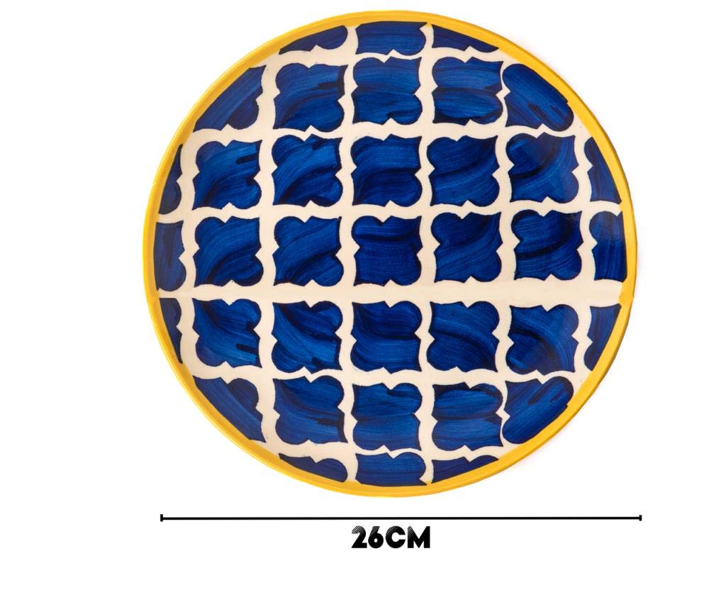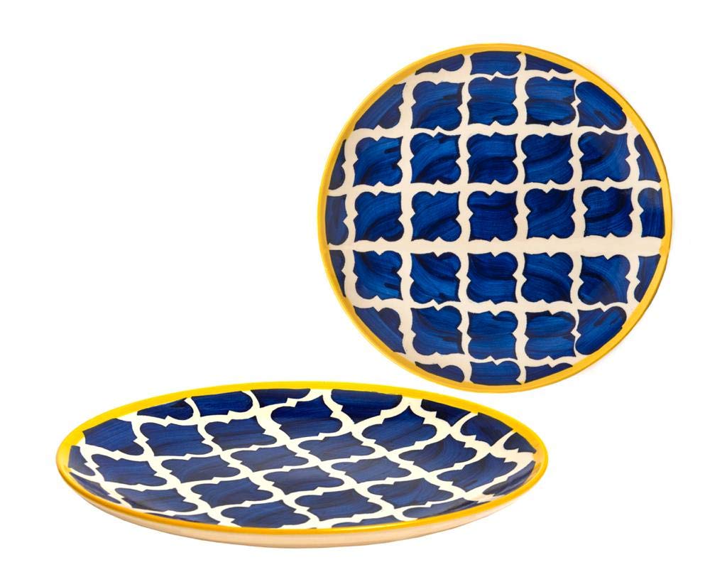 KHURJA POTTERY Handpainted Blue & Yellow Dinnerware Plate Set of 210 Inch