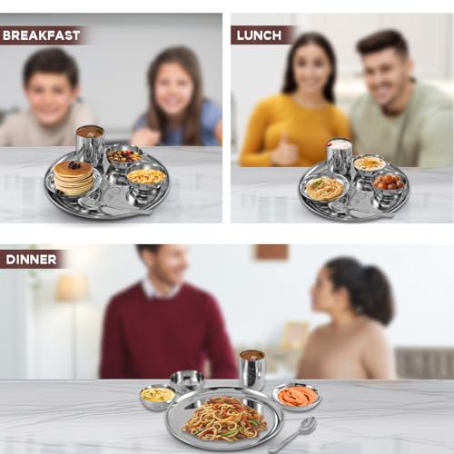 A multipurpose dinner/lunch set that can be used for home offices and restaurants. The 6 pcs stainless Steel set has all the required utensils. Durable dependable and economical the Stainless steel Dinner sets is perfect for use at home or even for gifting purposes. Made of high quality Stainless steel the Kraft dinner set is safe and hygienic to be used to eat on. Safe for use by kids the stainless steel dinnerware is unbreakable and shatterproof. Easy to clean and maintain the stainless steel Dinner set is the server's delight. It is an excellent choice if you want to replace your current dinner set with a trendy and contemporary one. Featuring a highly attractive design this lunch/dinner set will surely impress your lunch and Dinner guests while providing a great canvas to showcase your delicious food. Kraft aims to provide good quality products to customers so that they are always satisfied. You have made Kraft a part of your family and we want to strengthen this relationship by serving you better. Our products will help make household chores a breeze saving you time and energy to spend with your loved ones. As stylish as our products look we never compromise on the material they are made of. This product is made of 100% food grade stainless Steel with zero toxics. For the quality that they serve you Kraft products demand minimal maintenance. The stainless Steel surface can be wiped squeaky clean with a wet sponge or a cloth. It can even be used in a dishwasher. Keeps your food uncontaminated with its BPA free thermo-steel that is durable. All components are 100% food grade and non toxic. BPA free materials resists the growth of bacteria. This can be used as gifting options for your relatives or friends on their special occasions like marriage house warming ceremony and other events. 2 Year Warranty