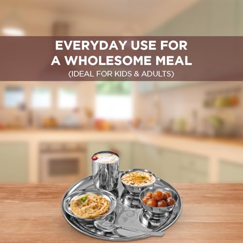 1 Spoon 2 Katoris / Vati 1 Rajbhog Dinner Plate 31 cm 1 Glass 1 Halwa Plate