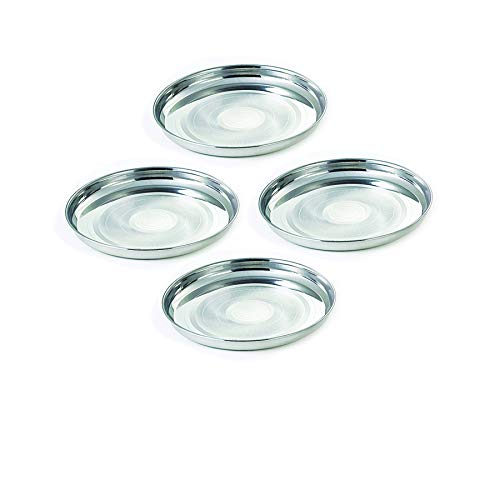 Neelam Stainless Steel 11 22 Gauge Diamond Thali Perfect for Daily Use Special Occasions High-Quality Food Grade Material Stylish Look Ideal for Home & Restaurant for Lunch 24 cm Set of 4