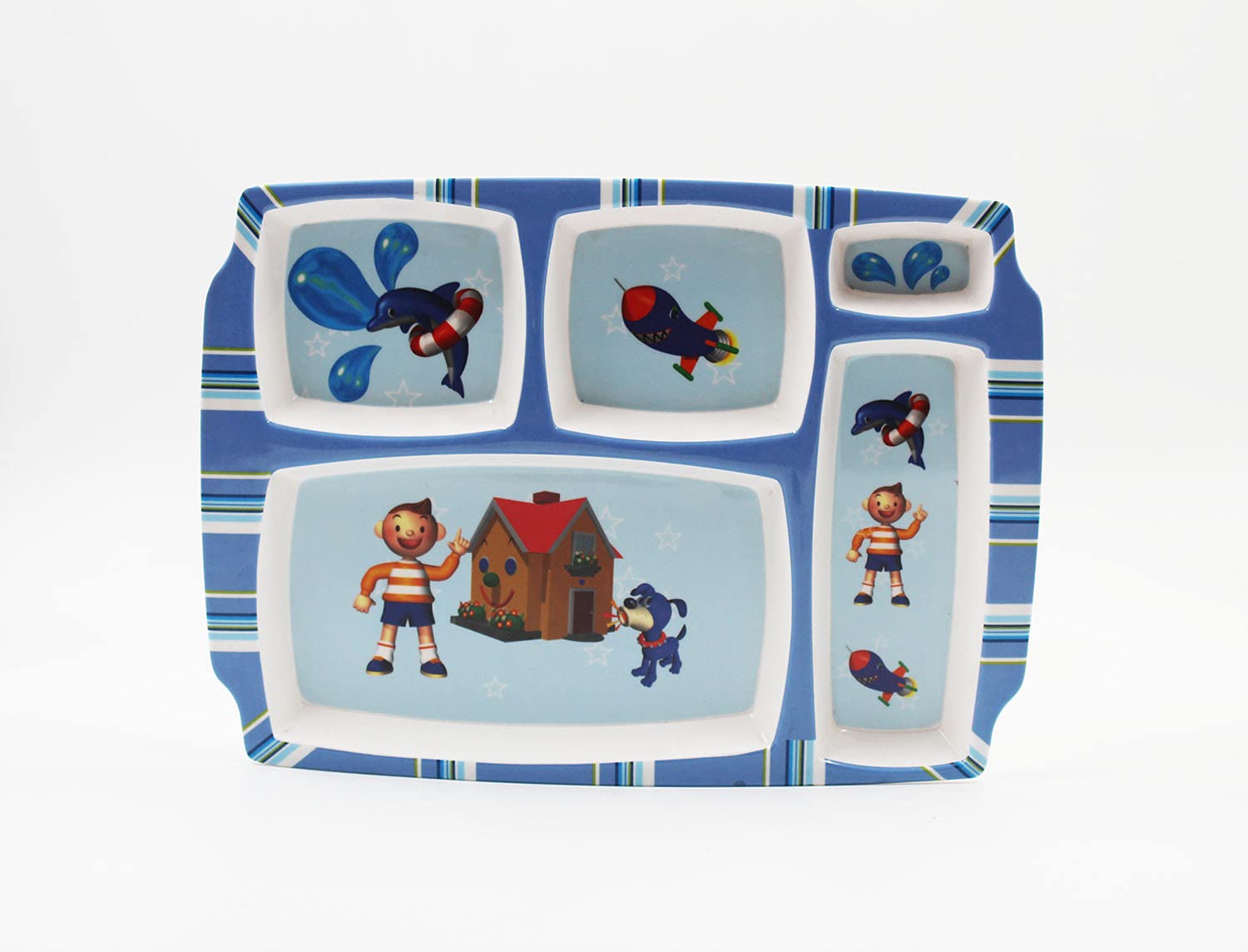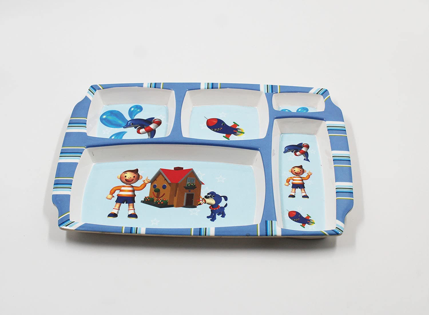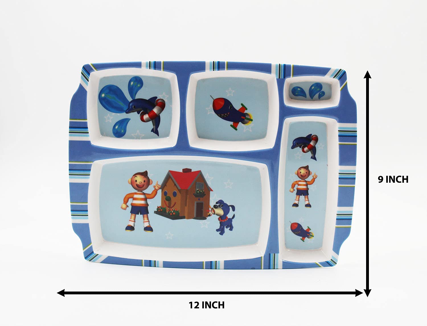 SAHARANPUR HANDICRAFTS Melamine Kids Plate | Rectangular 5 Section Multicolor Plate with Funny Cartoon Prints for Boys and Girls| Food Serving Plate with Partition (Nodee Kid)