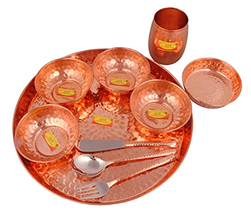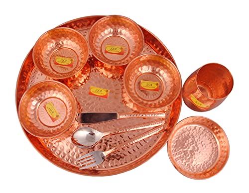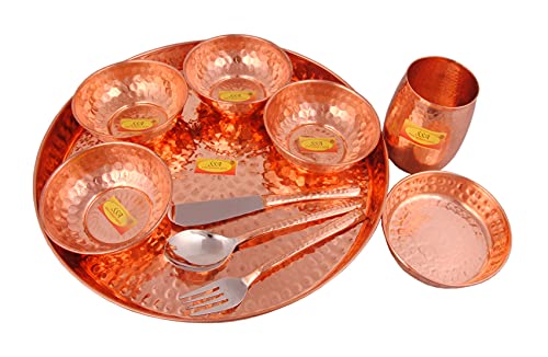 Shiv Shakti Arts 100% Pure Copper Hammered Designer - 10 Pcs Dinner Set Thali Set 13-Inch - for Dinnerware Tableware & Serving Items
