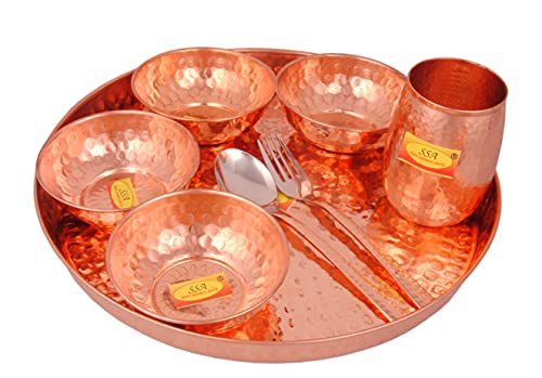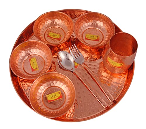 Shiv Shakti Arts 100% Pure Copper Hammered Designer - 8 Pcs Dinner Set | Thali Set 13-Inch - for Dinnerware Tableware & Serving Items