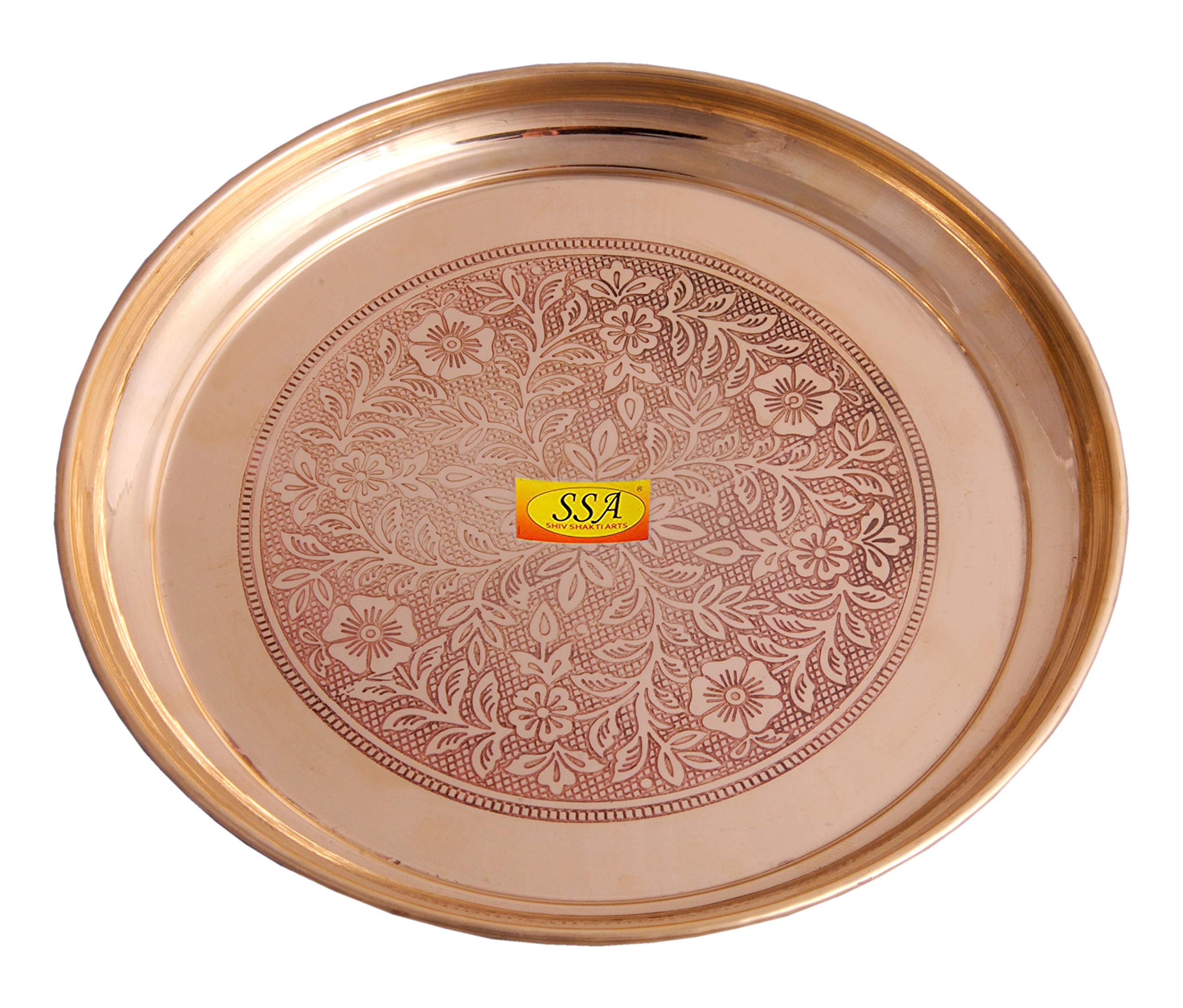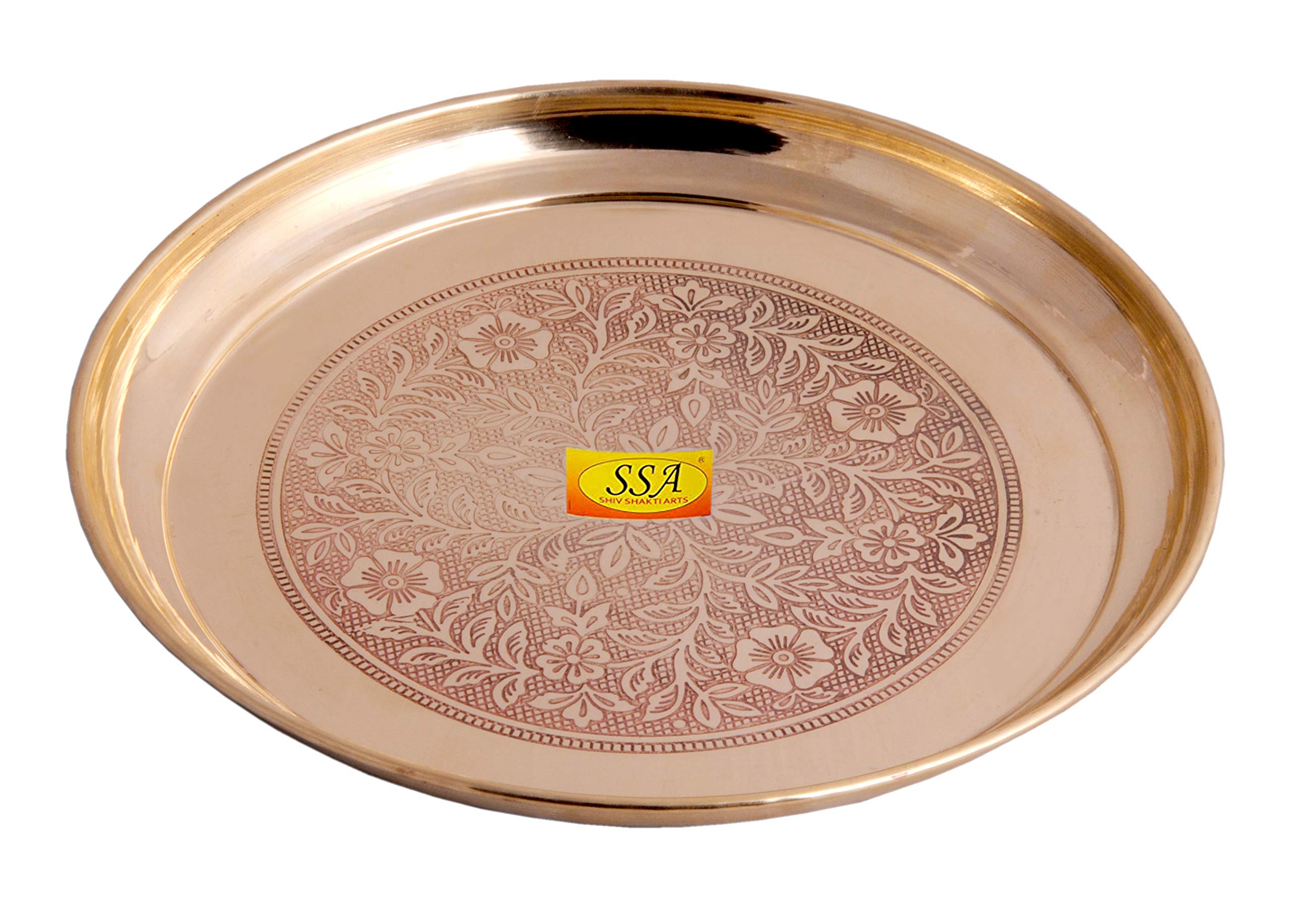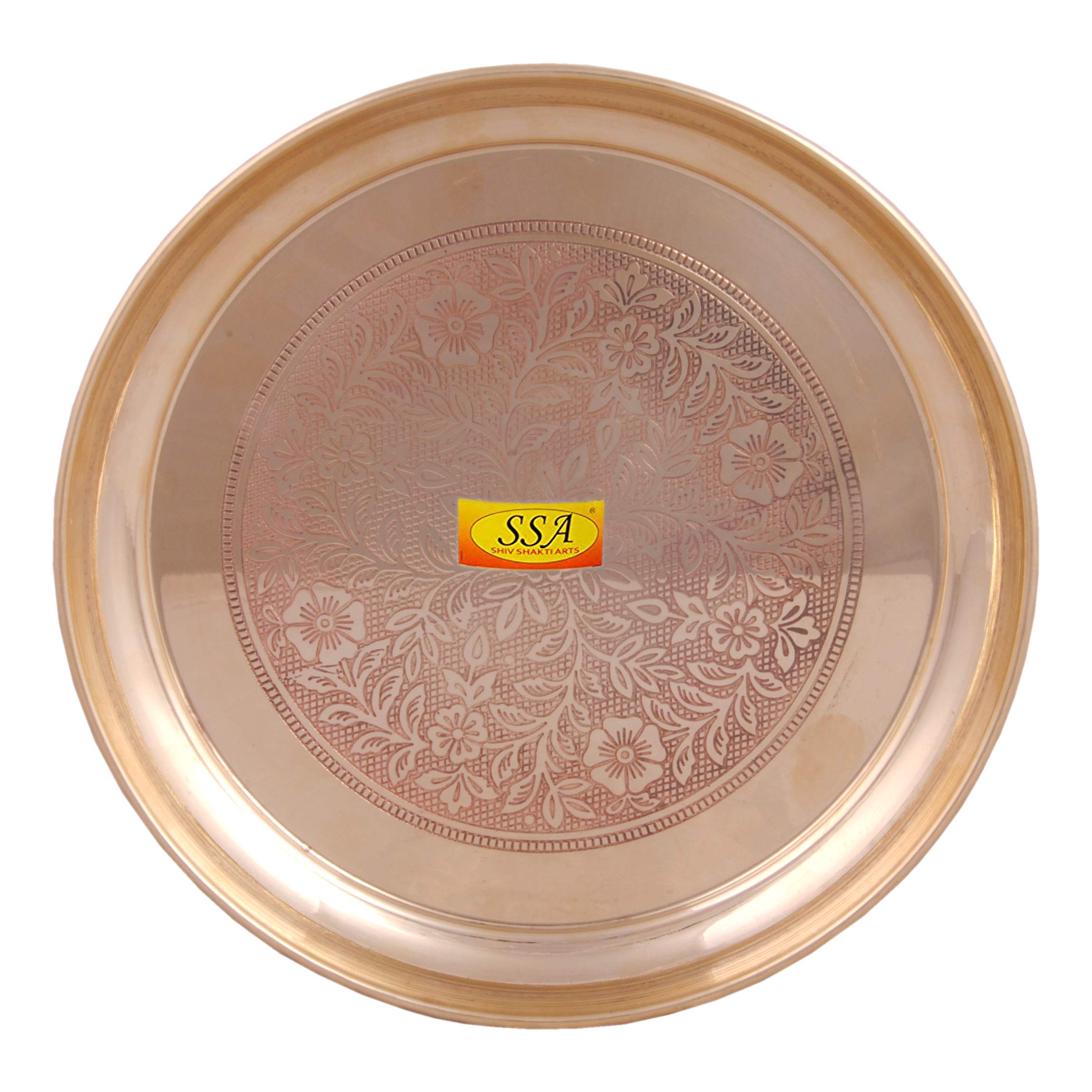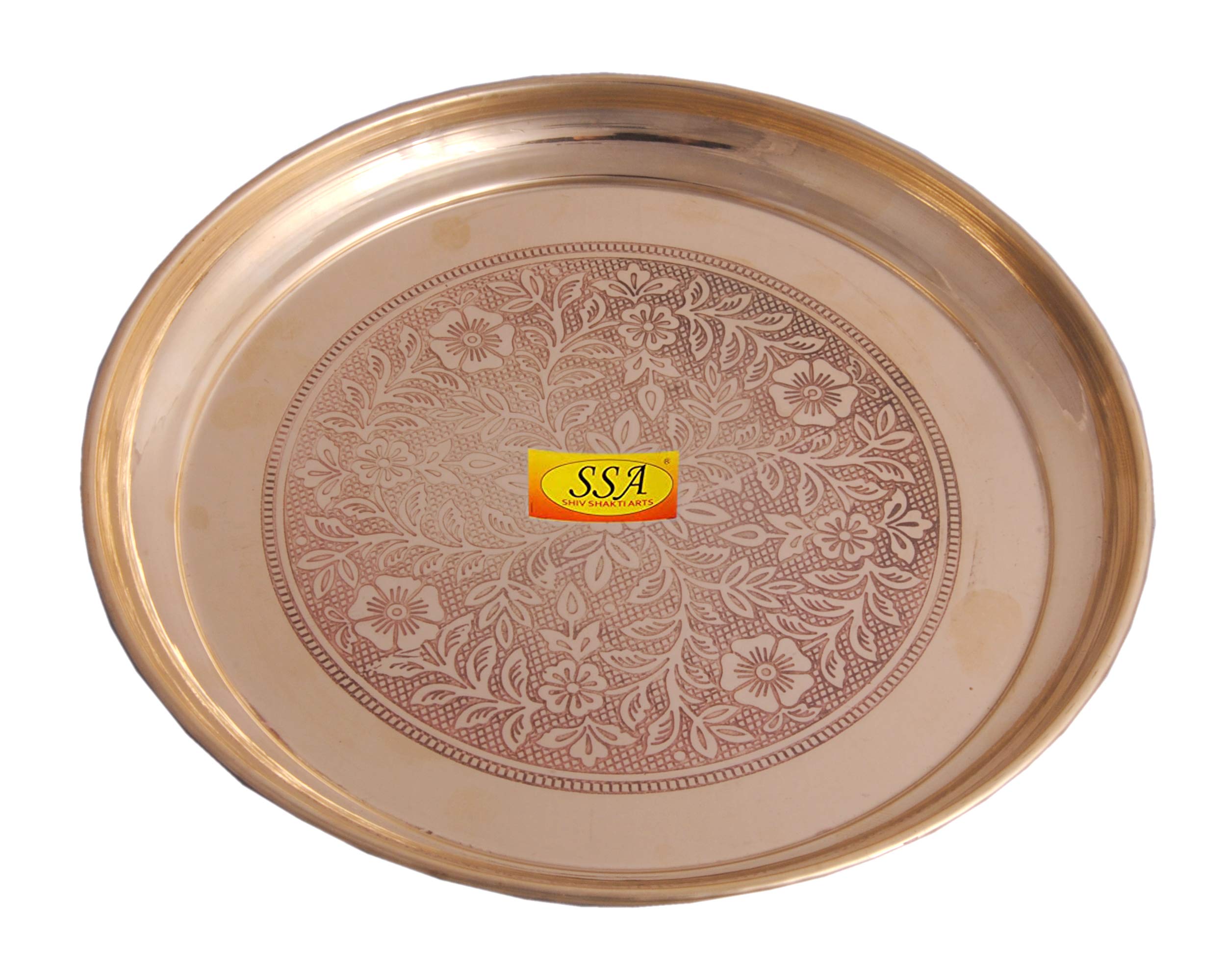 Shiv Shakti Arts 8.25 Inch Pure Brass Dinner Plate | Thali Set for Pooja & Serving Purpose (Engraved Flower Etching Design) - 1 Piece