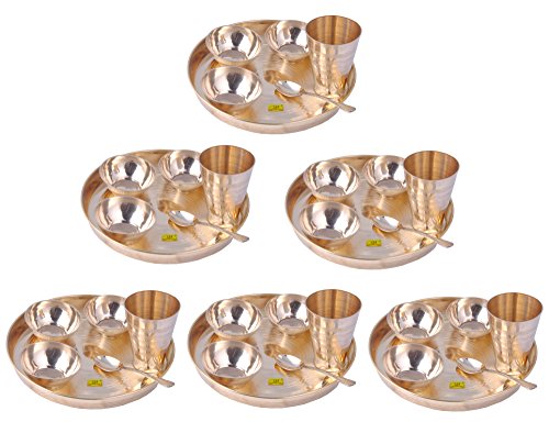 • Brass Thali Set 36 Pieces Consist of 18 Bowls 6 Thali 6 Spoon and 6 Glass